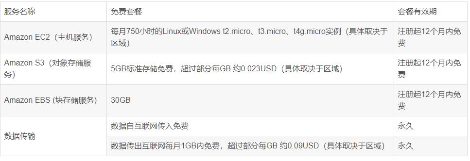 由于亞馬遜云科技服務(wù)種類較多,且計費詳細,很多用戶有些看不懂,所以對使用亞馬遜云望而卻步。其實亞馬遜云科技很多服務(wù)都有免費套餐,以讓用戶體驗,這些服務(wù)的免費套餐,搭建一個私人網(wǎng)盤綽綽有余。由于亞馬遜云海外區(qū)僅需個人信用卡就可以注冊,所以我們以海外區(qū)為例。我們可以從以下鏈接亞馬遜AWS海外區(qū)域賬戶免費套餐_免費云服務(wù)-AWS云服務(wù) 看到亞馬遜云哪些服務(wù)具備免費套餐: