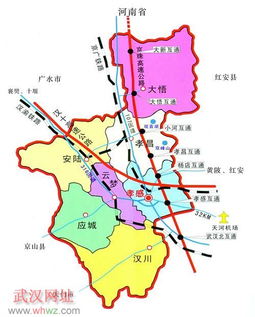 孝感市是湖北省的地級(jí)市之一。下轄孝南區(qū)和云夢(mèng)、孝昌、大悟3縣,代管應(yīng)城、安陸 、漢川3個(gè)縣級(jí)市。